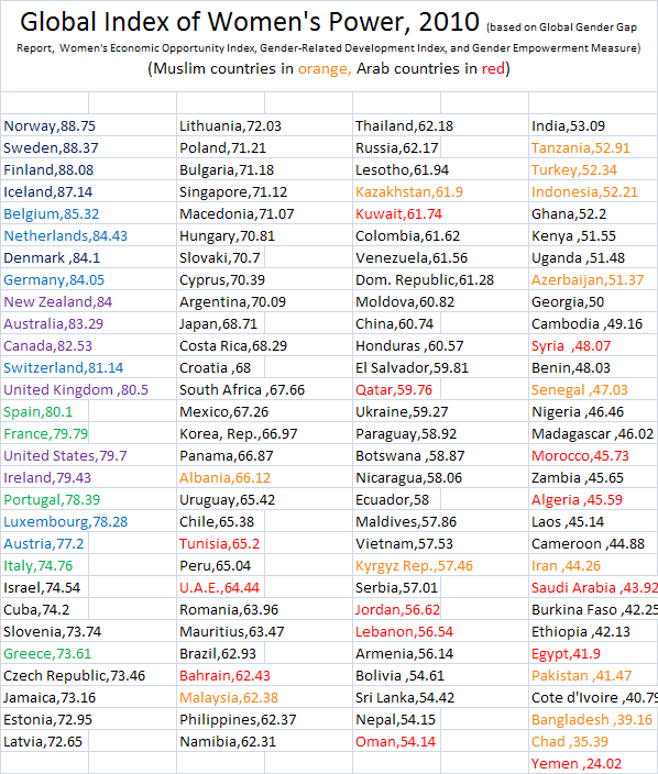 The Global Index of Women's Power tells a similar tale: