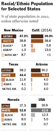 According to California Governor Jerry Brown’s new state budget, Latinos are projected to become the largest single racial/ethnic group in the state by March of this year, making up 39% of the state’s population. That will make California only the second state, behind New Mexico, where whites are not the majority and Latinos are the plurality.