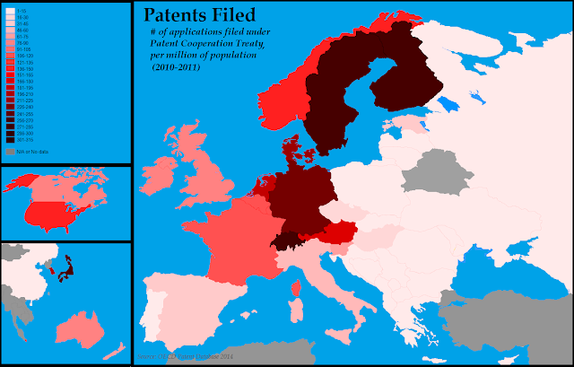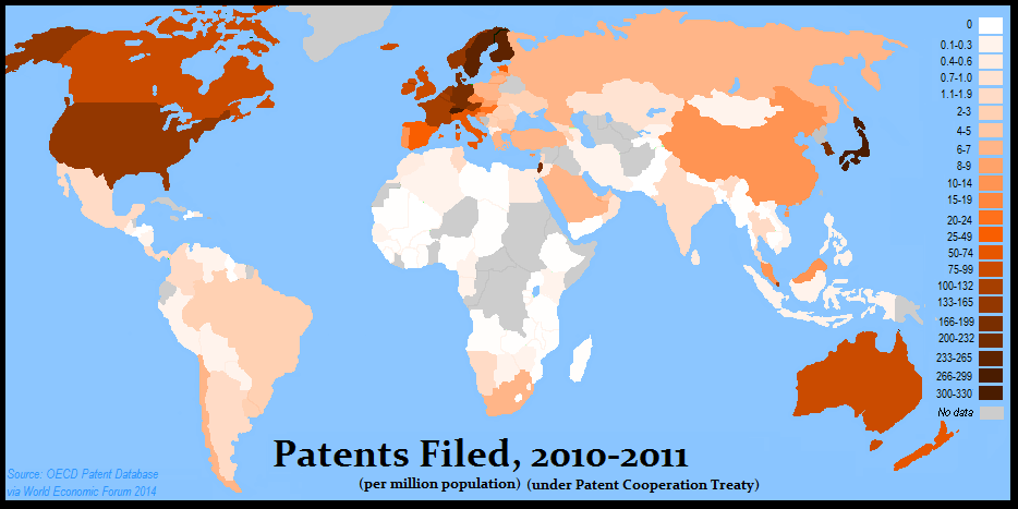 Patents Filed, per million population