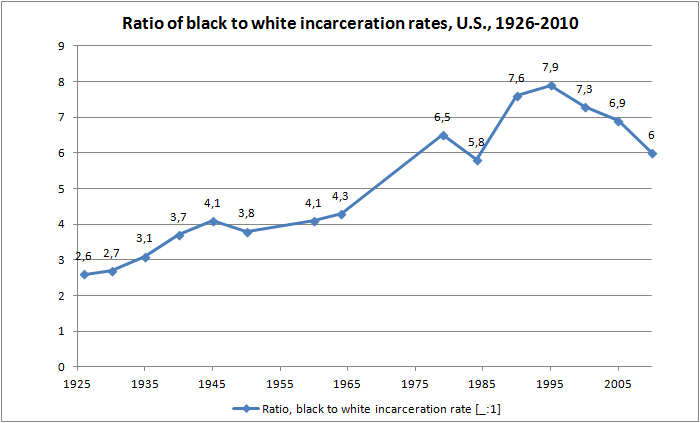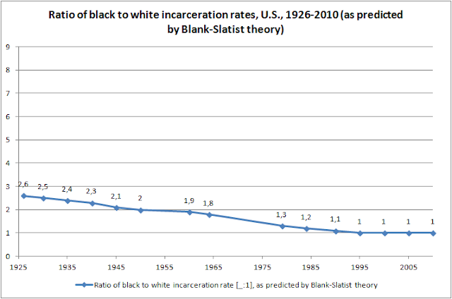 History: Ratio of Black to White Incarceration Rates, U.S., 1926-2010, According to Blank Slatist Theory & Real